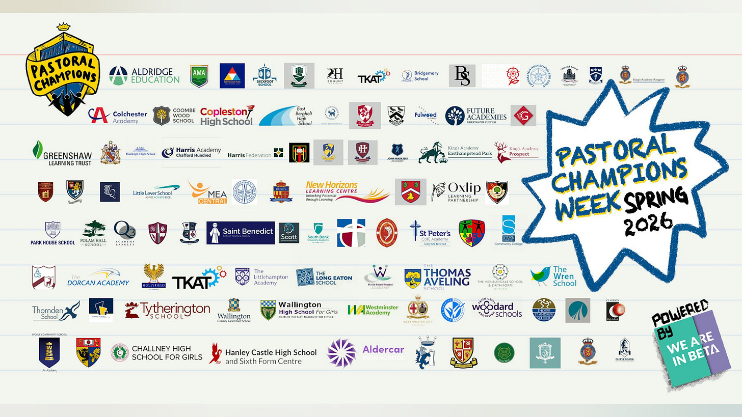 If you want to practise it too, nominate a colleague for (or apply to speak at Pastoral Champions Week 2026. You’ll get load from it.