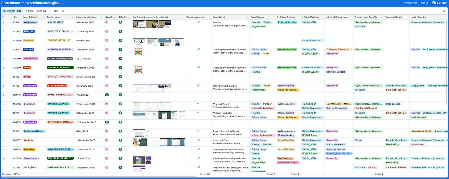 Researcher - Louise Turtle - has spent 5 days researching how successful schools go about attracting and holding onto staff via their employee benefits offer.